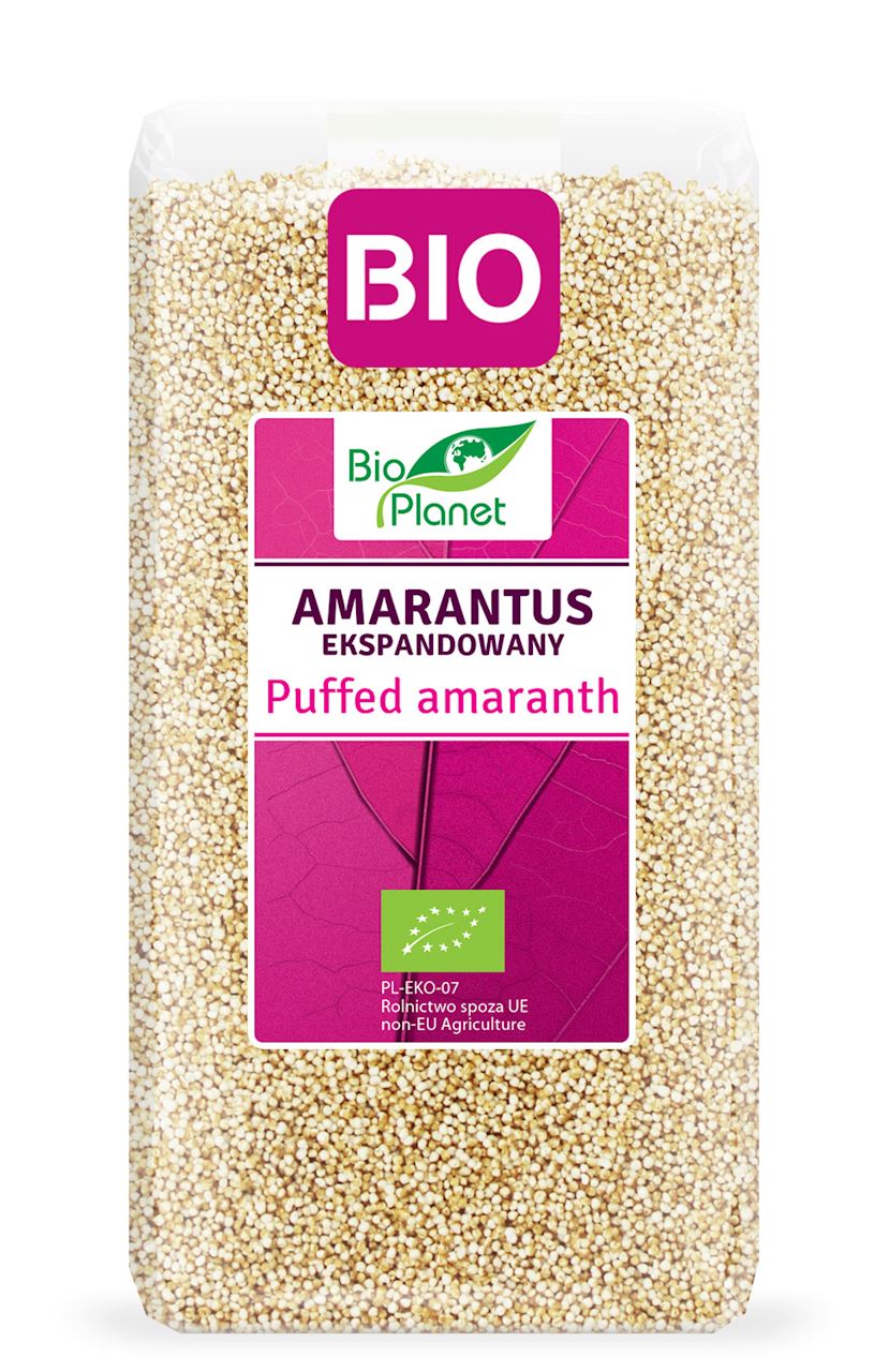 Ekologiczny amarantus jest jedną z najstarszych i najbardziej pożywnych roślin (pseudozbóż) uprawianych na świecie. Amarantus ekspandowany (popping) jest produktem do bezpośredniego spożycia. Polecamy jako dodatek do jogurtu, MLEKA, napoju roślinnego, deseru, owsianki, sałatki czy zupy krem. Idealny również do naleśników, ciasta, kotletów warzywnych lub jako panierka.