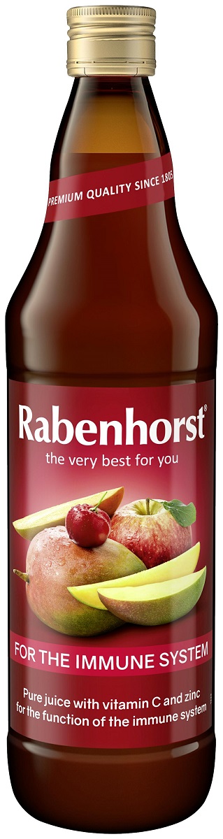 Aby nasz układ odpornościowy działał sprawnie, nasz organizm potrzebuje odpowiedniej ilości witaminy C i cynku. Ponieważ organizm nie jest w stanie sam wytworzyć tego minerału, a jego zasoby są ograniczone, należy go regularnie dostarczać poprzez zbilansowaną i zróżnicowaną dietę. Z soczystych jabłek, dojrzałych w słońcu mango i cennych wiśni aceroli, produkujemy sok najwyższej jakości, który jest wzbogacony witaminą C i cynkiem, aby wspierać układ odpornościowy.