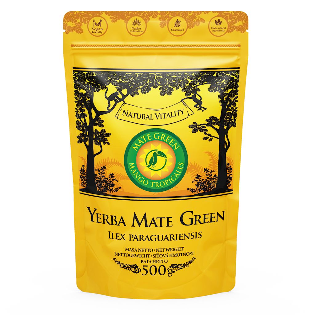 Brazylijska Yerba Mate Green jest szlachetną odmianą ostrokrzewu paragwajskiego. Smak tej mate jest delikatny, wynikający z harmonijnego połączenia ostrokrzewu oraz owoców. Lekko owocowy aromat pozostaje przy wielokrotnym dolewaniu wody do tej samej porcji suszu. Owocowe składniki nadają tej kompozycji dobrze wyczuwalny aromat i smak, w którym gorzka nuta jest zbilansowana tak, że powstaje napar dość mocny, jednak nie gorzki. Zdecydowany smak ostrokrzewu koresponduje tu ze słodyczą owoców mango i ananasa. Nuty owocowe są mocniejsze w kolejnych zalaniach. Mate Green to bestseller, najlepsza yerba mate z rodzinnej plantacji w brazylijskim tropiku. Oznacza się dużą zawartością naturalnej kofeiny i naturalnym roślinnym smakiem, duże kawałki owoców mango bez sztucznego cukru, zachwycające połączeniem słodyczy w smaku i zapachu dodający egzotycznego charakteru bez dodatku sacharozy.