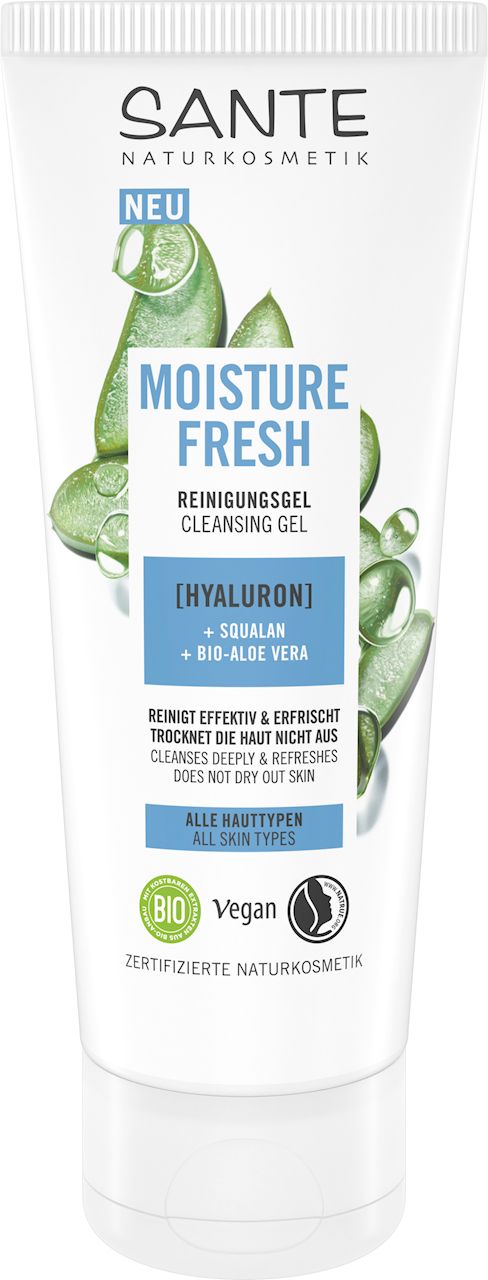 ŻEL OCZYSZCZAJĄCY DO MYCIA TWARZY NAWILŻAJĄCY Z KWASEM HIALURONOWYM, SKWALANEM I ALOESEM ECO 100 ml – SANTE